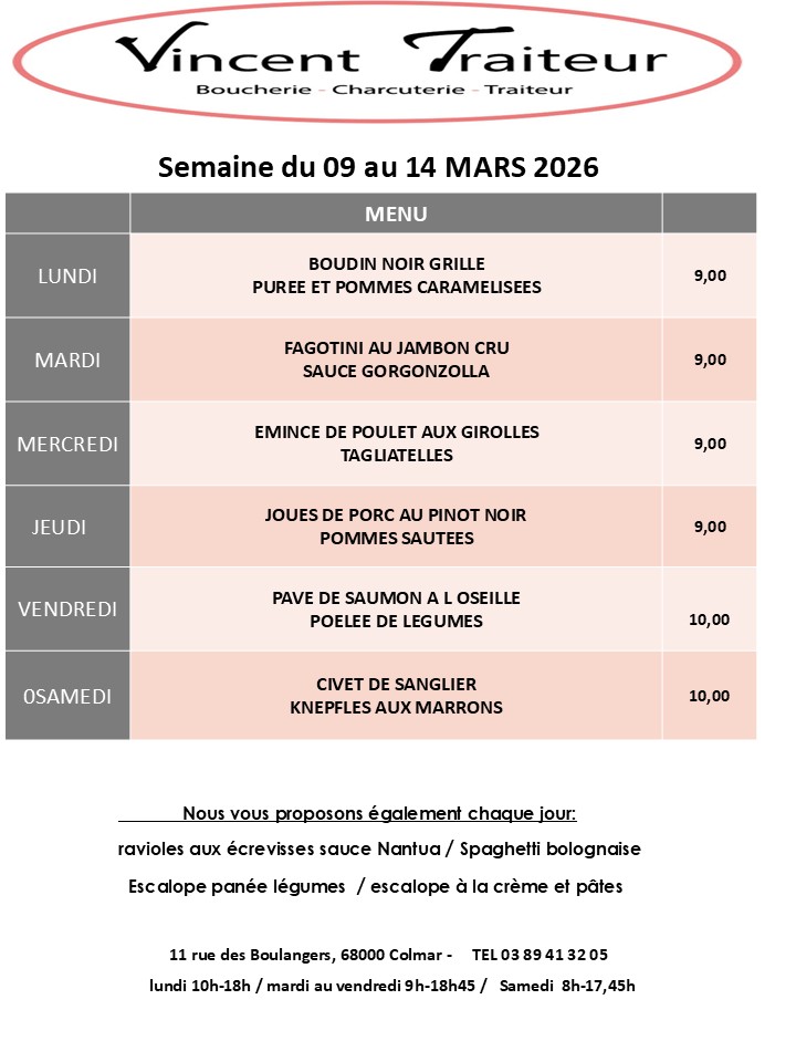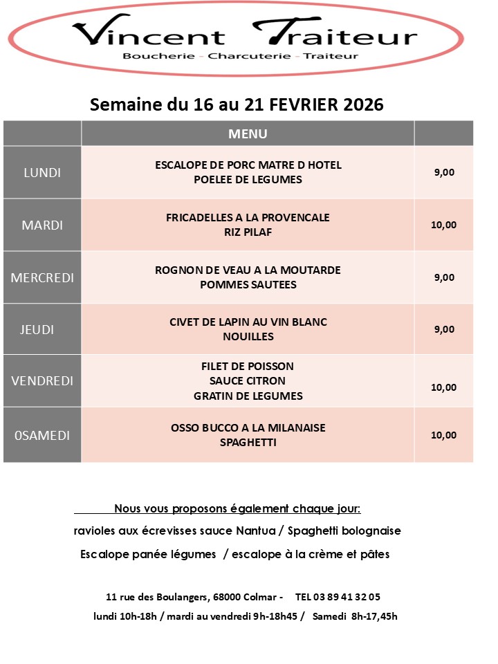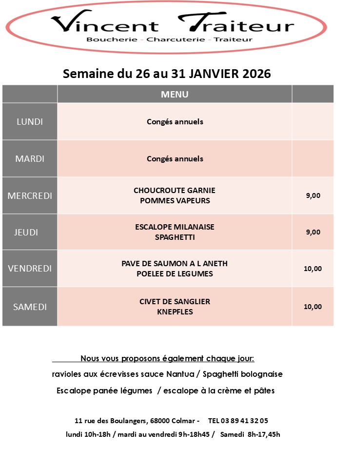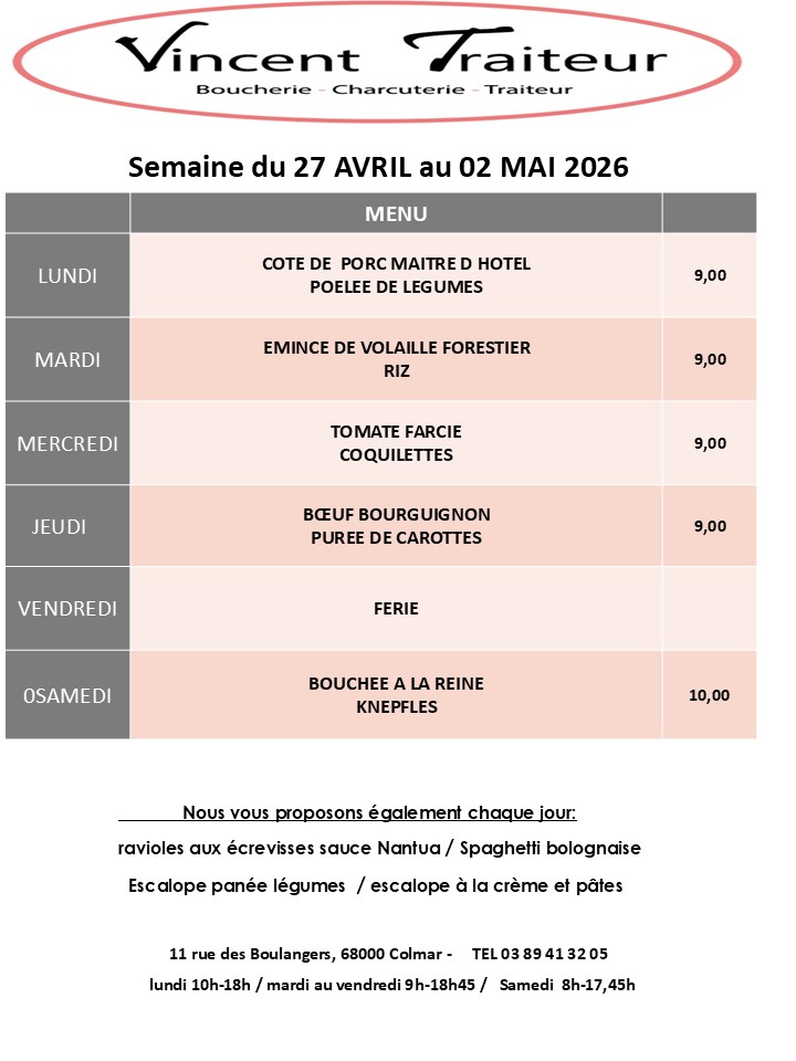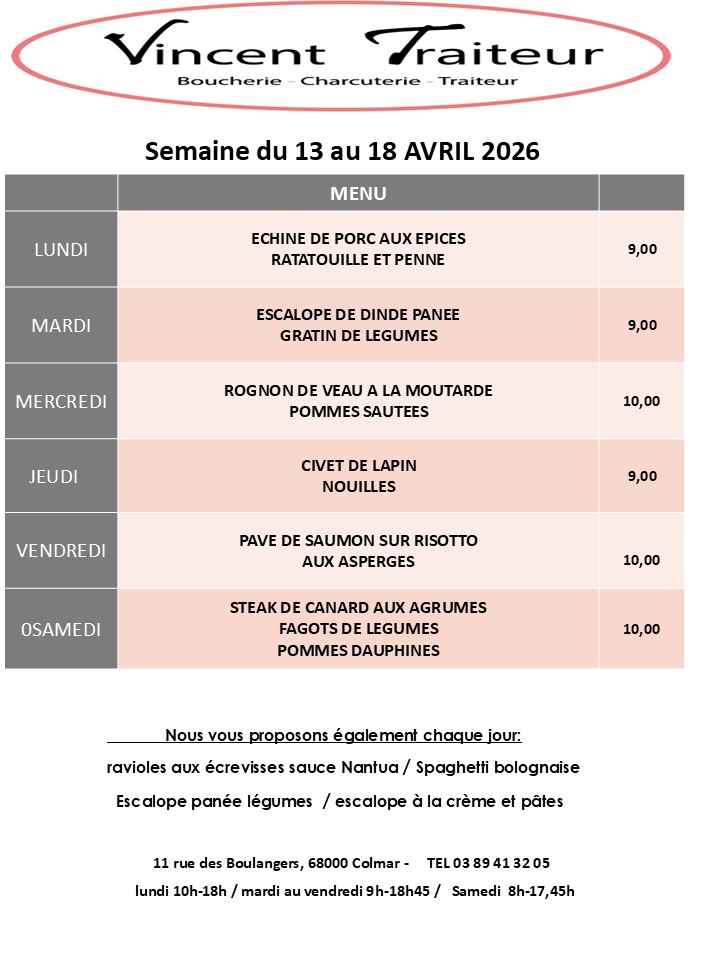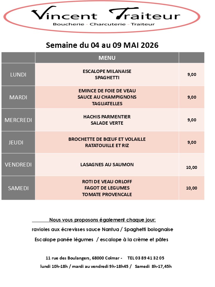 Bienvenue chez VINCENT TRAITEUR, boucherie charcuterie traiteur familial depuis 1982, situé en plein cœur de Colmar. Mon équipe et moi-même, Laurent SCHMITT, vous accueillons avec le sourire pour vous faire découvrir nos produits alsaciens, frais et gourmands : charcuterie, viandes et volailles, croutages, plats du jour, …