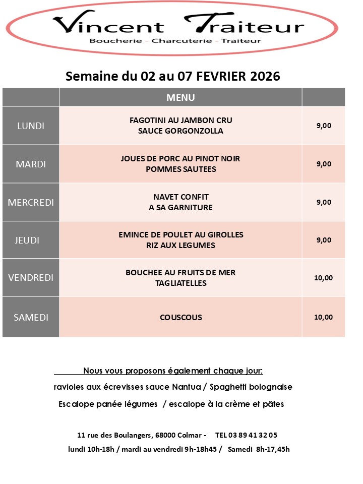 Bienvenue chez VINCENT TRAITEUR, boucherie charcuterie traiteur familial depuis 1982, situé en plein cœur de Colmar. Mon équipe et moi-même, Laurent SCHMITT, vous accueillons avec le sourire pour vous faire découvrir nos produits alsaciens, frais et gourmands : charcuterie, viandes et volailles, croutages, plats du jour, …
